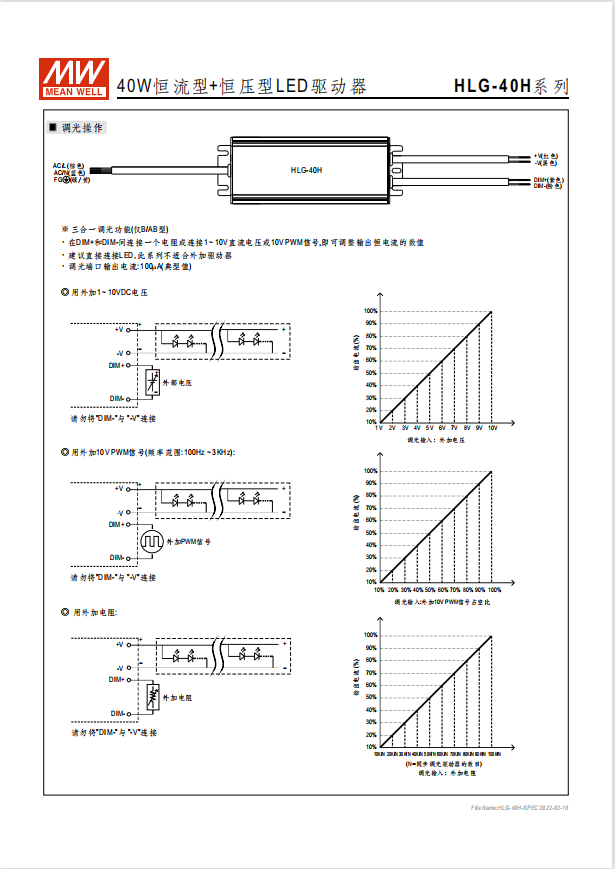 輸出可經(jīng)由電位器調(diào)整;三合一調(diào)光(1~10Vdc或10V PWM信號或電阻);定時(shí)調(diào)光