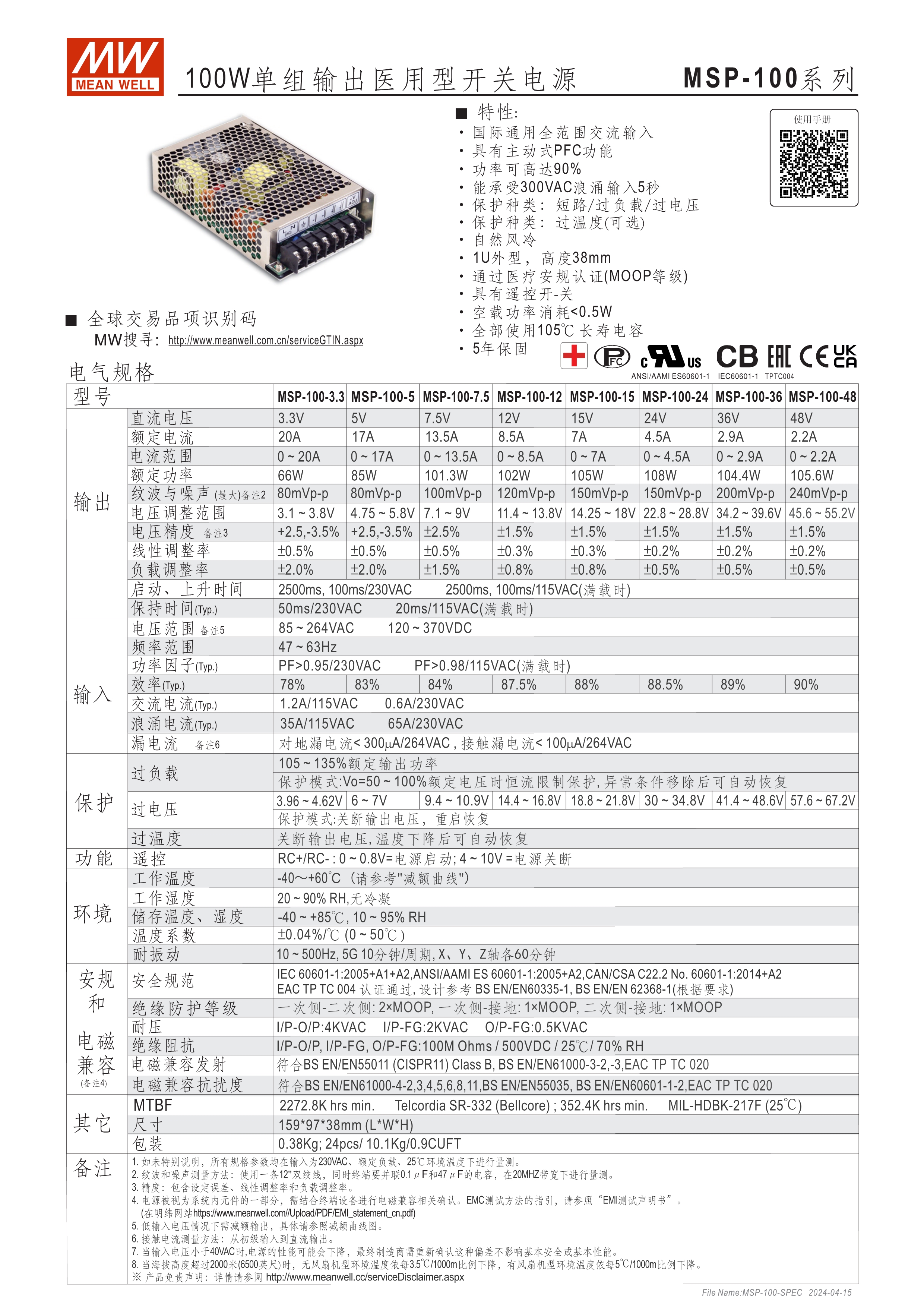 醫(yī)療用等級(jí),內(nèi)建主動(dòng)式功率因子矯正功能(active PFC) 通過(guò)醫(yī)療類(lèi)安規(guī)認(rèn)證(MOOP等級(jí)) 高效能,空載待機(jī)消耗瓦數(shù)<0.5W~0.8W 5年保固期