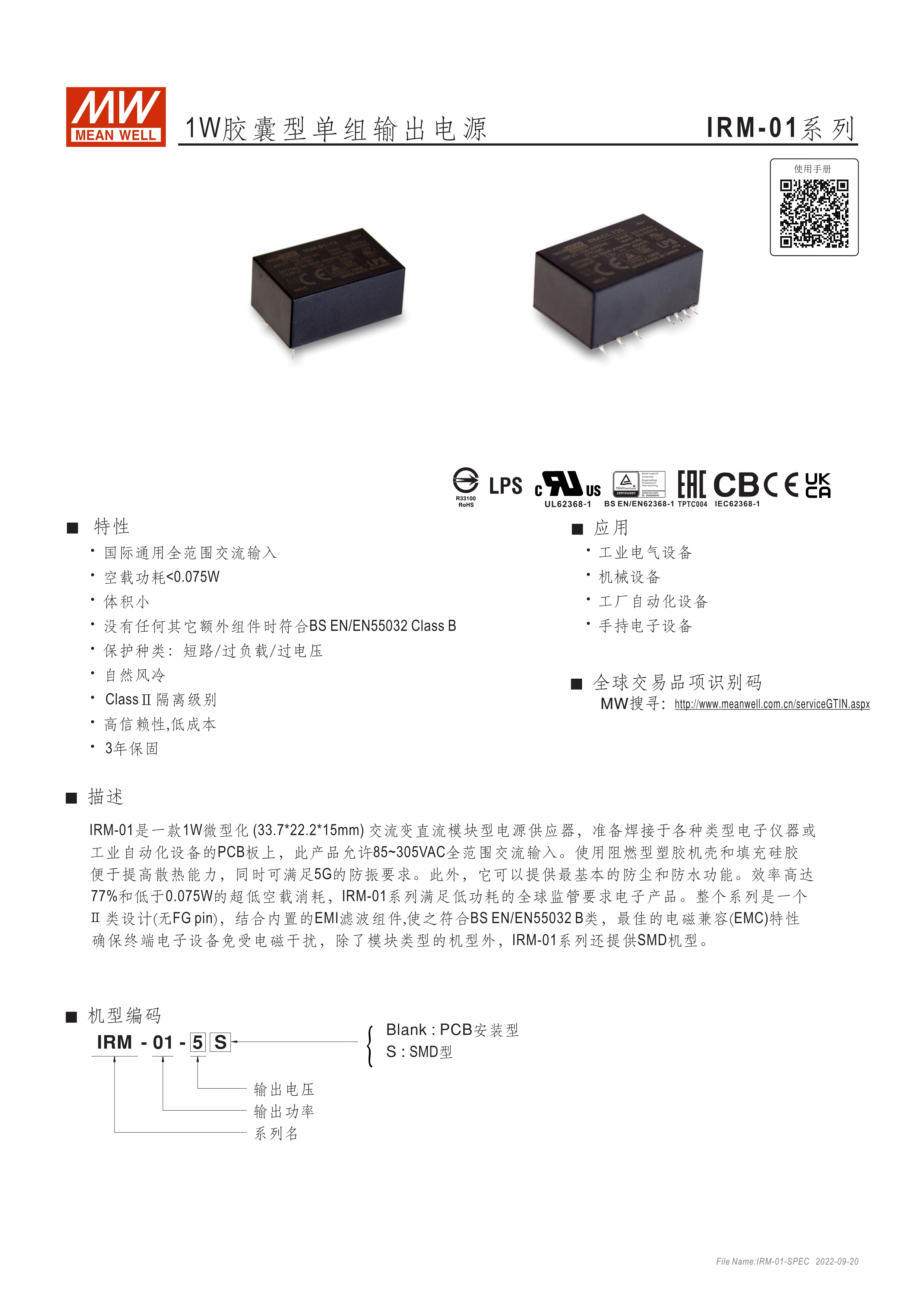 安裝于終端設(shè)備之PCB上 小型灌膠膜塊 空載功耗<0.075W~0.1W 操作溫度:-30~+85℃ (依機(jī)型) 不需外接任何組件即可符合 EN55022 class B PIN, SMD, 端子臺(tái)等多種選擇