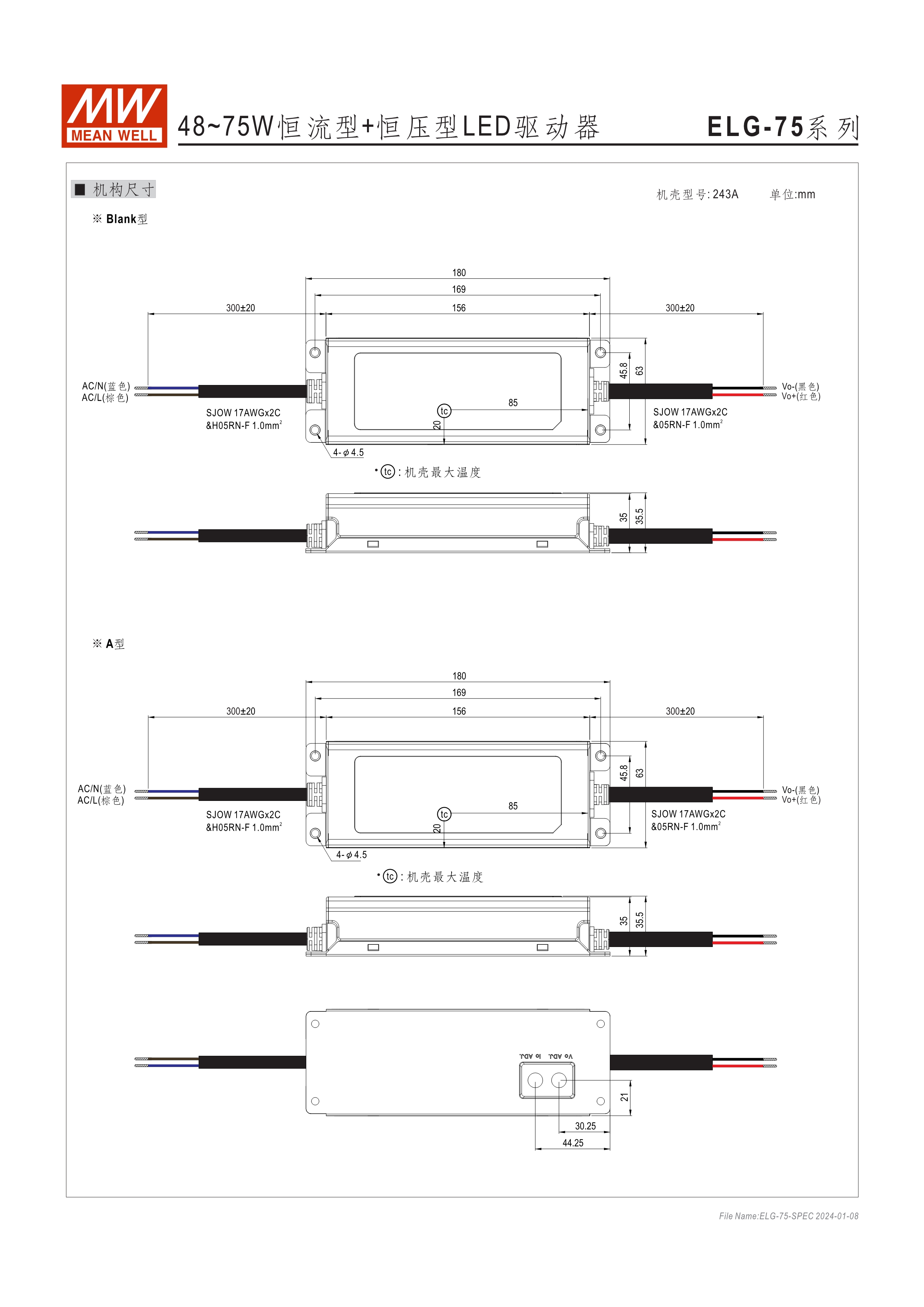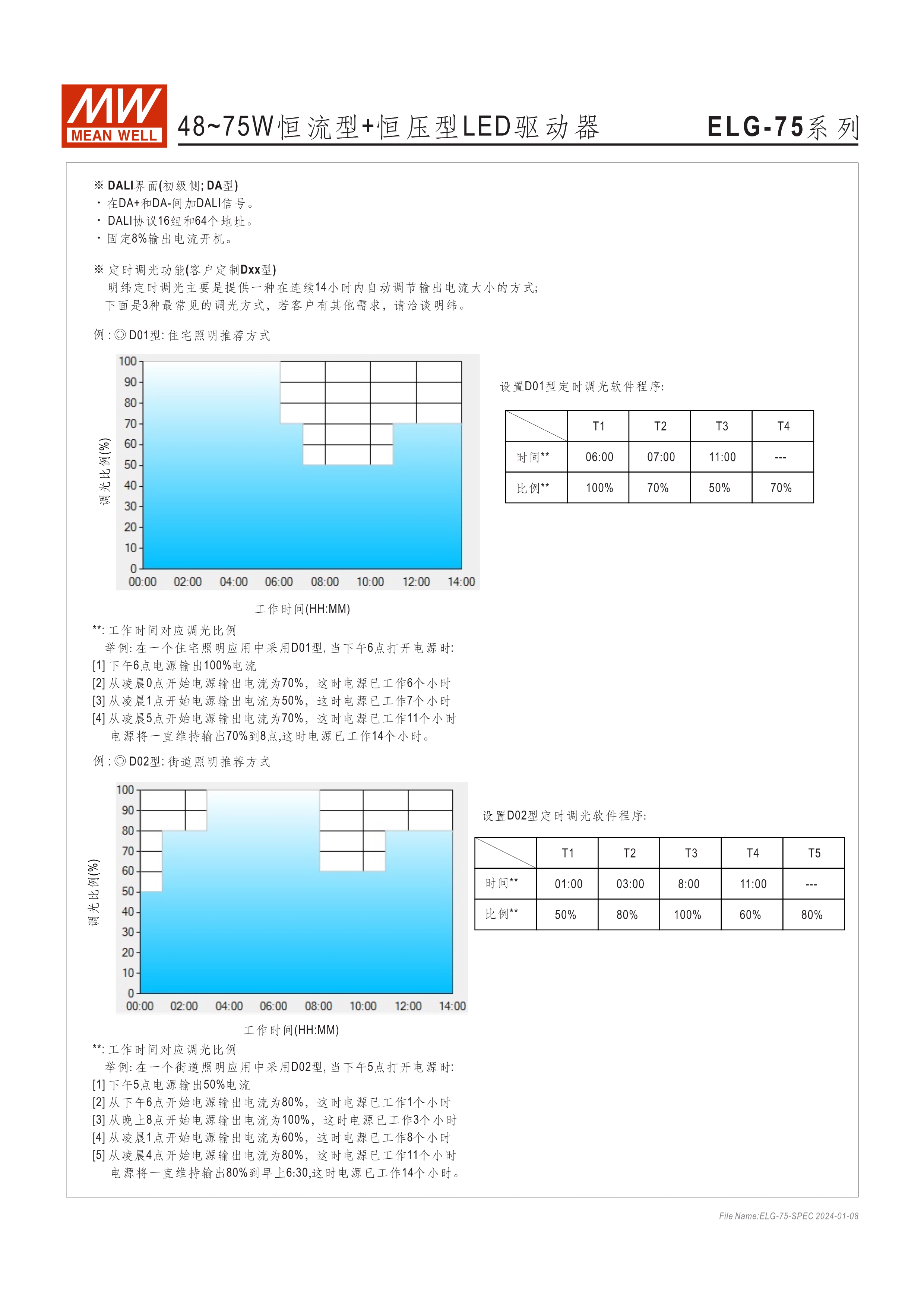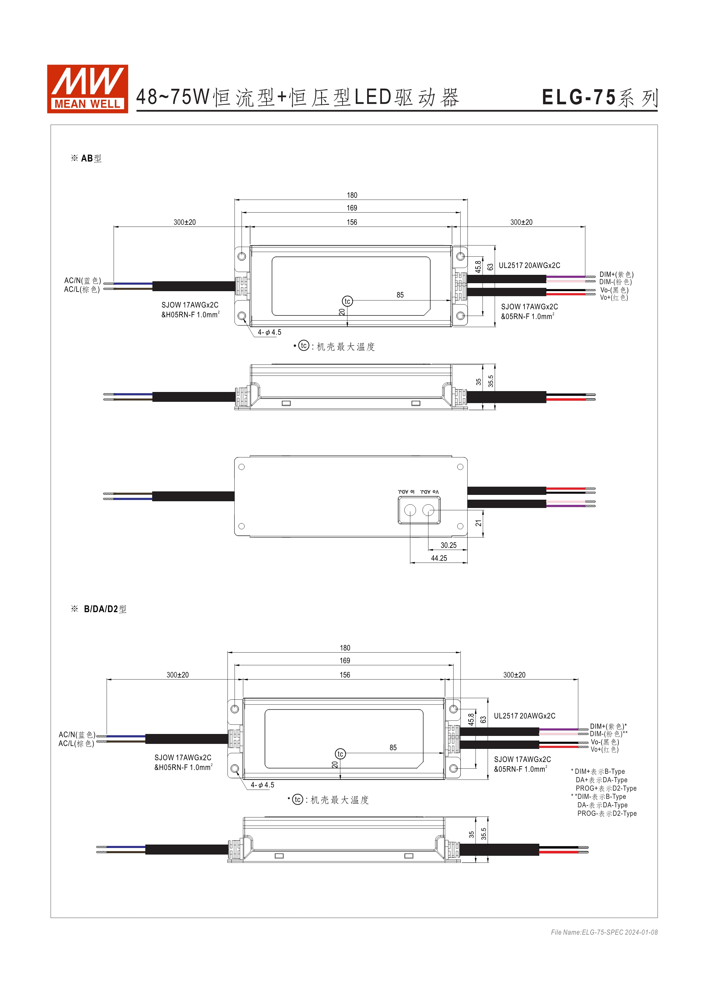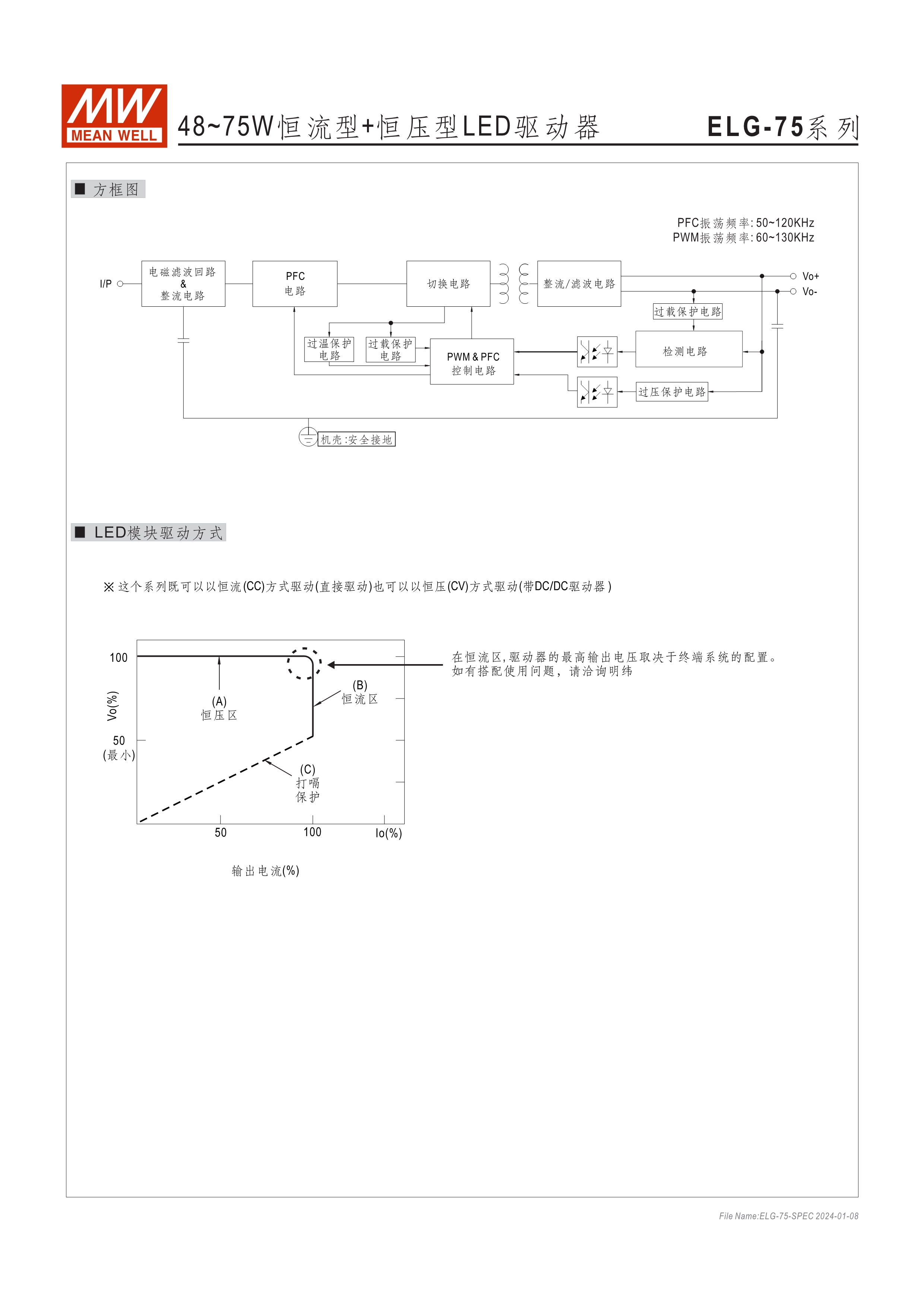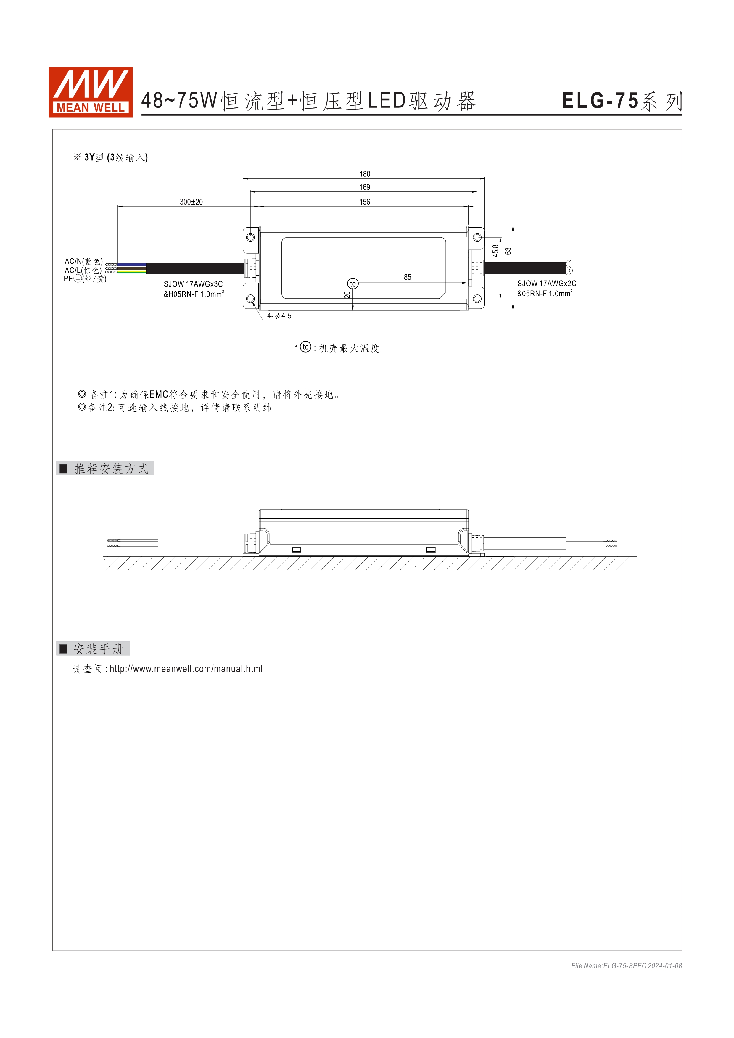 輸入范圍100~305VAC 金屬外殼,IP67/IP65防護等級可用于戶外與室內(nèi) 功能選項 : 輸出可經(jīng)由電位器調(diào)整;三合一調(diào)光(0~10Vdc或10V PWM信號或電阻,可關(guān)斷);智能定時調(diào)光;DALI;輔助直流輸出(ELG-150 BE-Type) Type "HL" LED電源適用在安裝于Class I, Division 2 類 危險地點之照明燈具 適合于LED路燈及戶外LED照明等應用 5年保固期