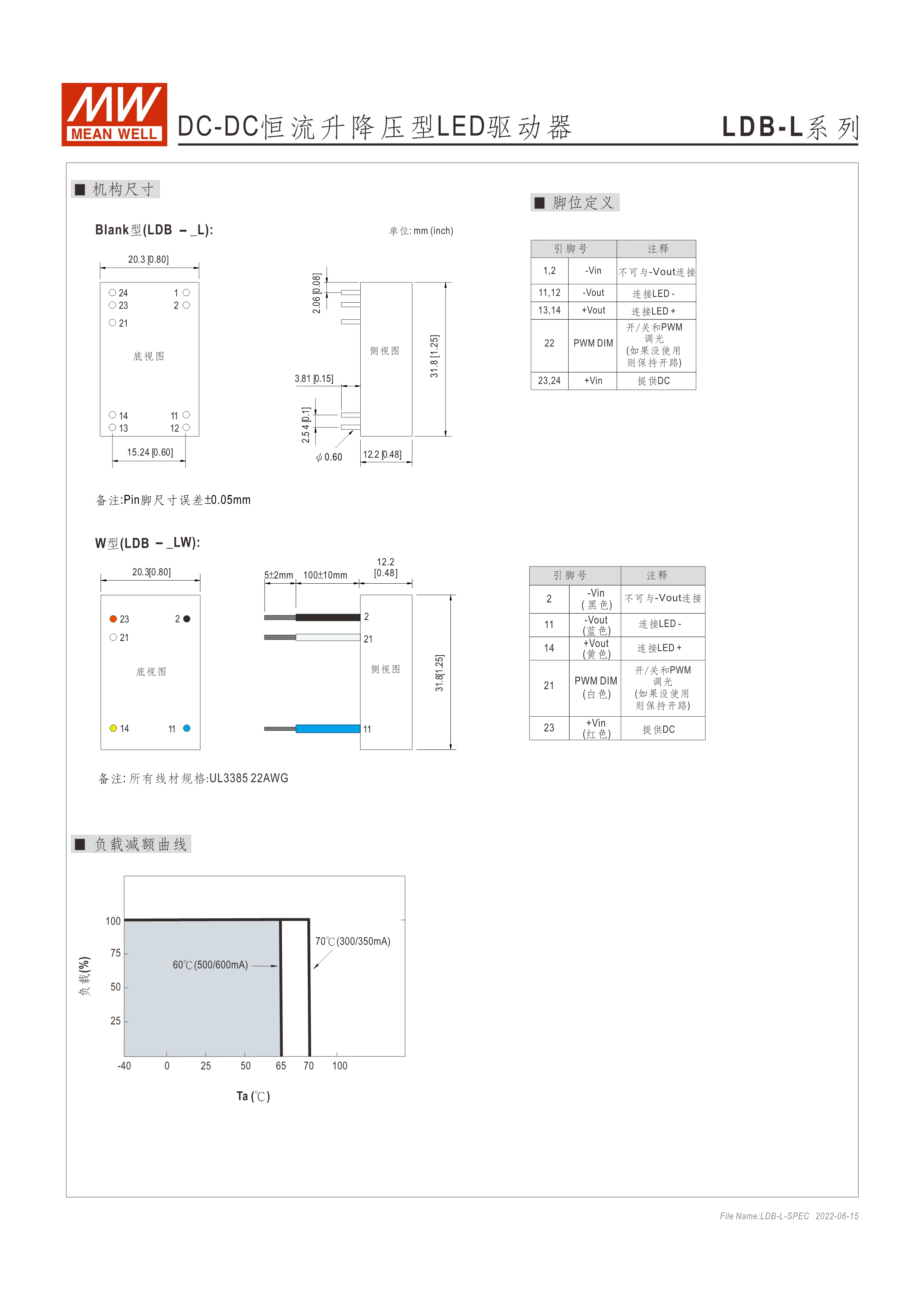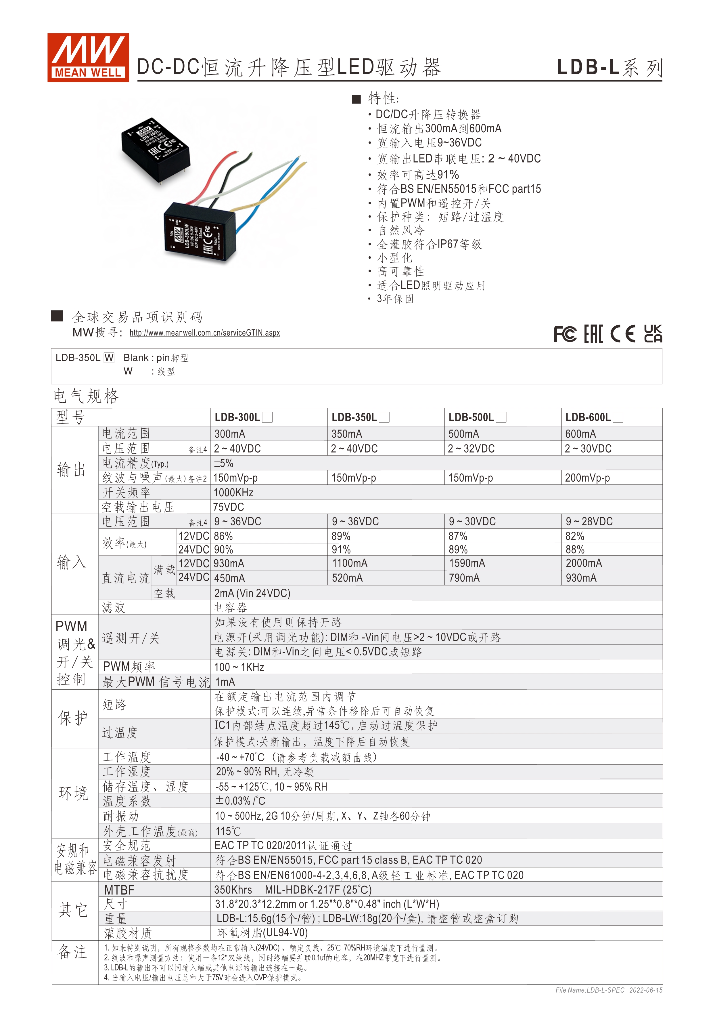 DC/DC升降壓式恒流輸出LED驅(qū)動器 91%高效率 不需外接任何組件即可符合EN55015及FCC 具PWM調(diào)光及開關(guān)遙控功能 適合降壓-升壓型照明系統(tǒng) (需插件于PCB母板上) 具備插pin及出線兩種型式