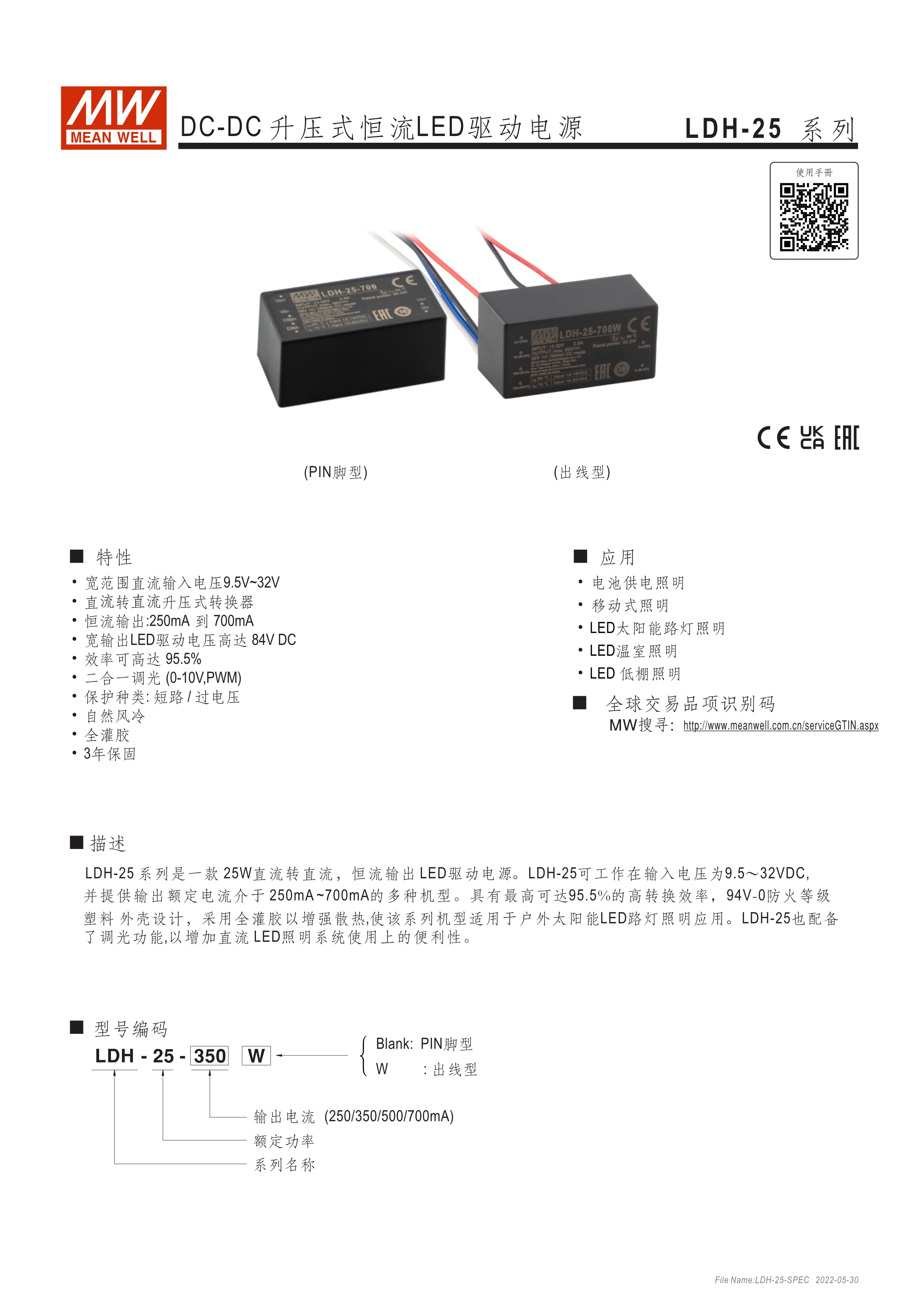 DC/DC升壓式恒流輸出LED驅(qū)動器 95%超高效率 不需外接任何組件即可符合EN55015 內(nèi)建PWM+模擬調(diào)光功能及開/關(guān)遙控功能 適合于升壓型照明系統(tǒng)(需插件于PCB母板上) 具備插pin及出線兩種型式
