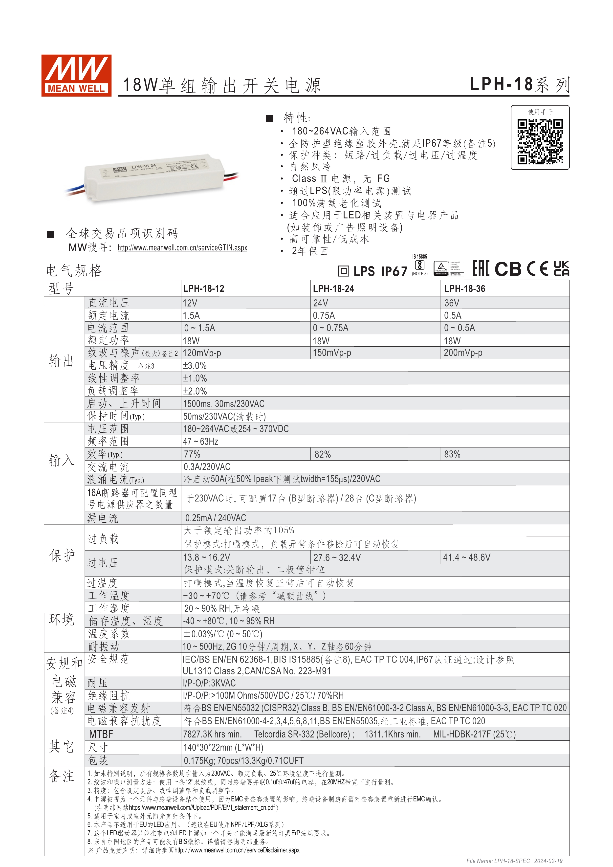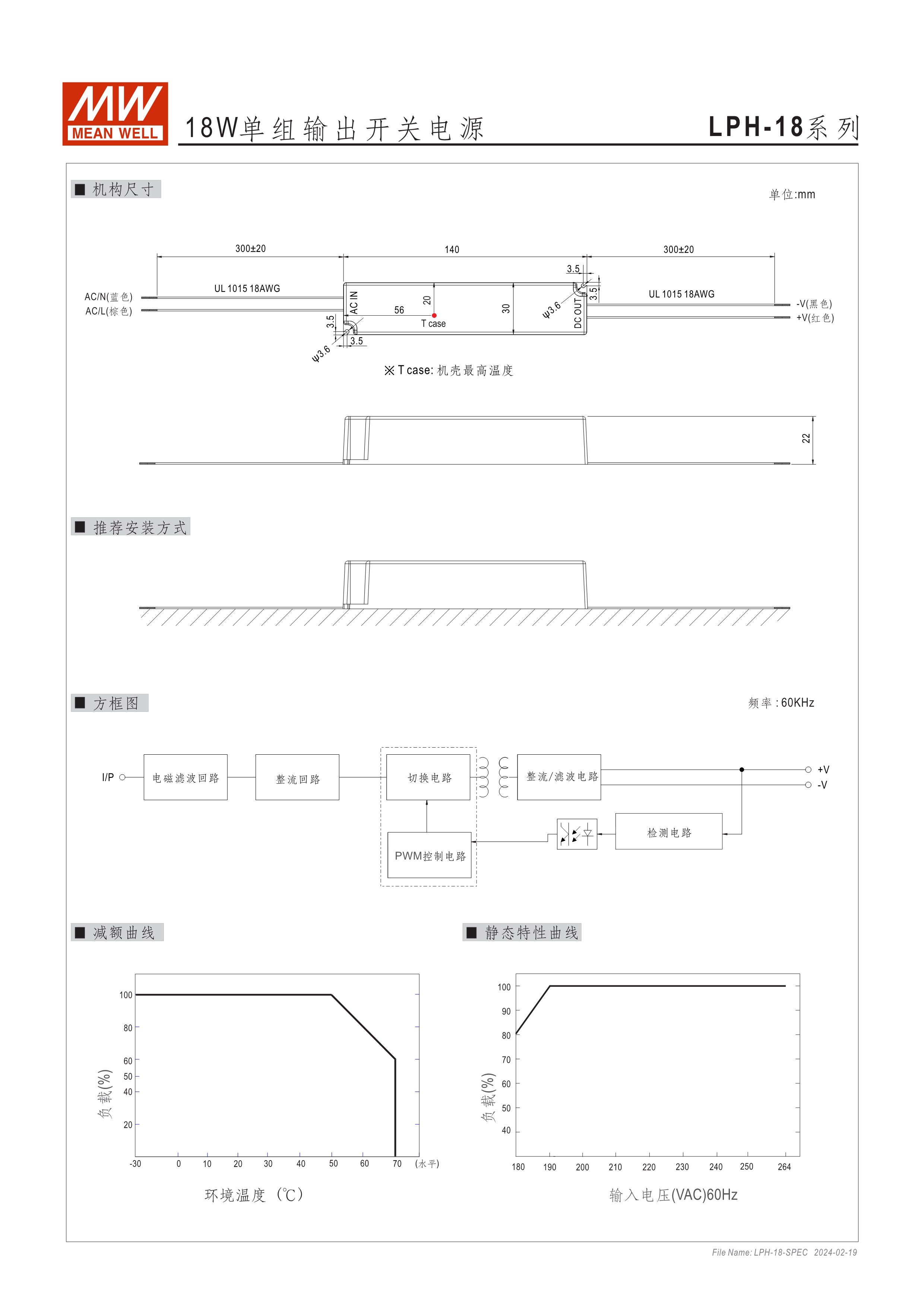90~264VAC 交流輸入 (18W及150W除外) 長條型塑料外殼,IP67防護(hù)等級 經(jīng)濟(jì)型系列 可承受300VAC突波輸入達(dá)5秒(LPV/C-20/35/60/100) -30~70℃寬工作環(huán)溫范圍 Type "HL" LED電源適用在安裝于Class I, Division 2 類 危險(xiǎn)地點(diǎn)之照明燈具(僅LPVL-150) 適合于經(jīng)濟(jì)型LED照明及LED電子廣告牌相關(guān)應(yīng)用