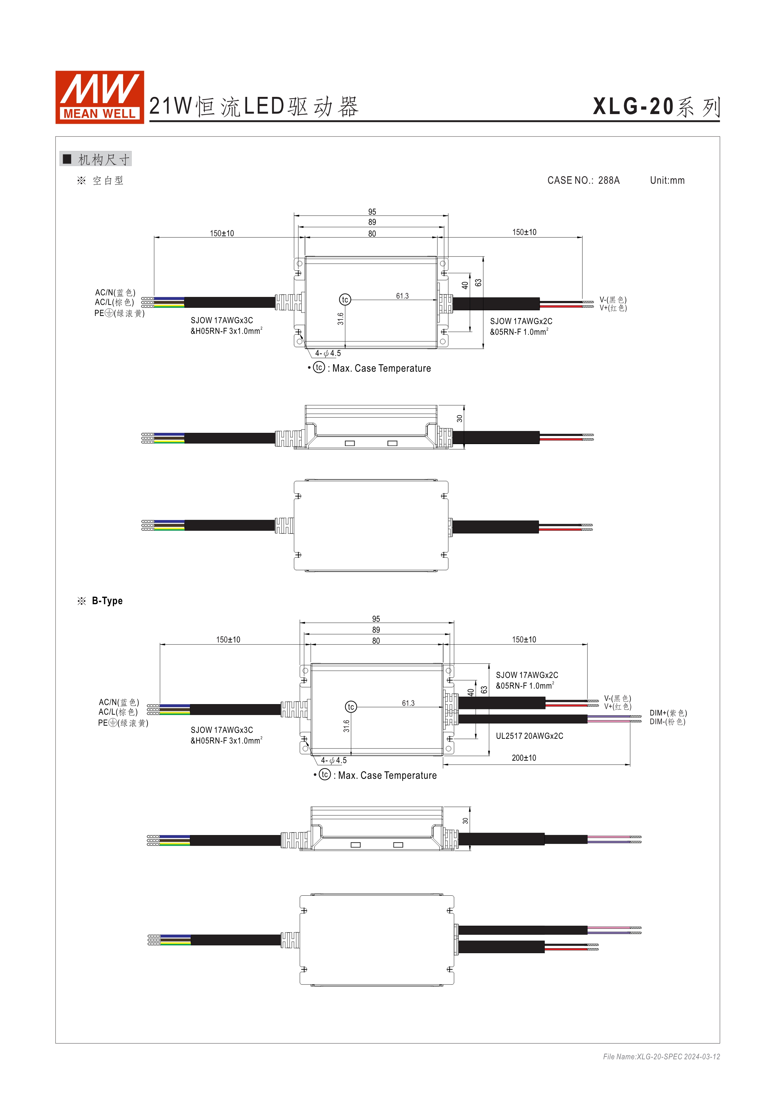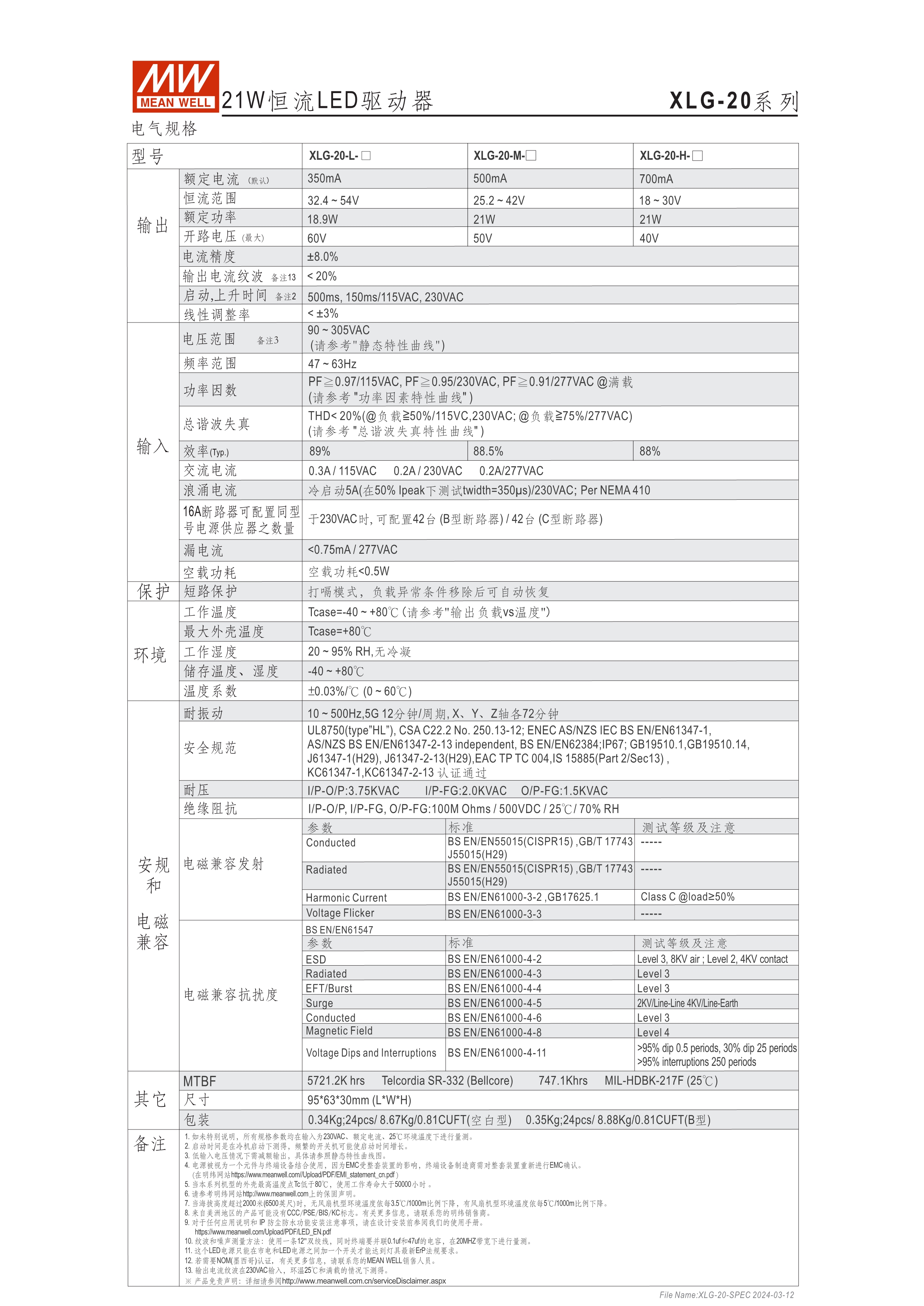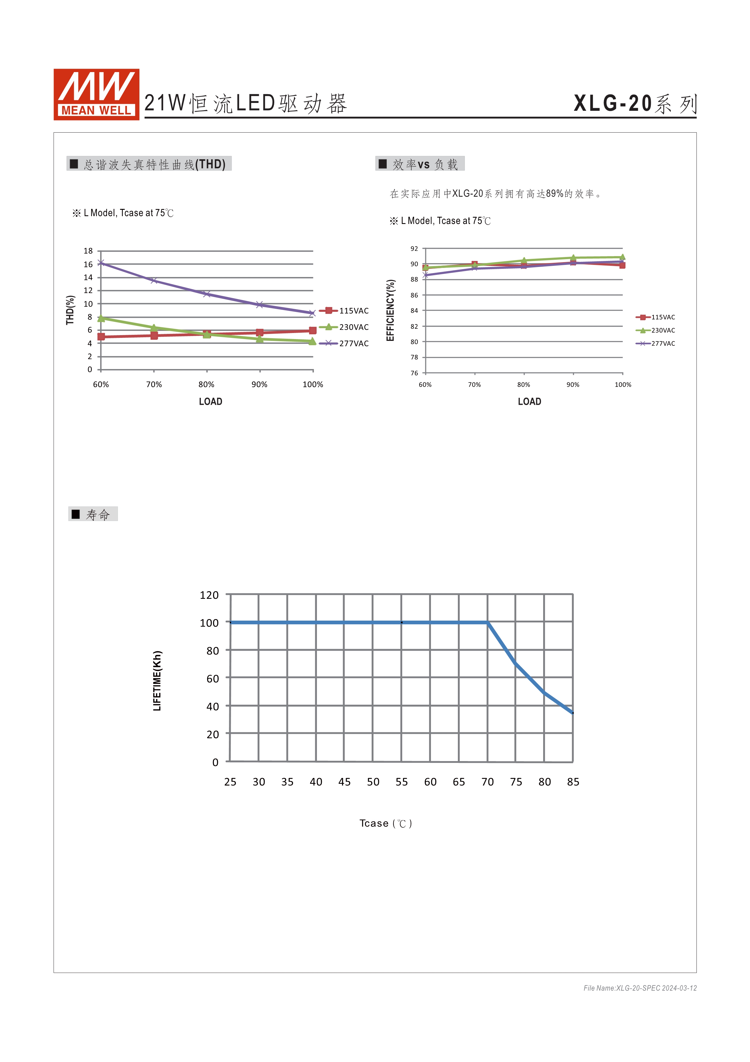 寬電壓輸入范圍100~305VAC (XLG-20為90~305VAC) 寬電流輸出可調(diào)整恒功率設(shè)計 (XLG-20為恒流模式) 主動式PFC設(shè)計及輸出效率可達90% 調(diào)光功能: 三合一 / DALI 保護功能:短路、過電壓、過溫度 雷擊保護耐壓設(shè)計6KV(L/N-FG)/4KV(L-N); XLG-20為4KV(L/N-FG)/2KV(L-N) 5年保固