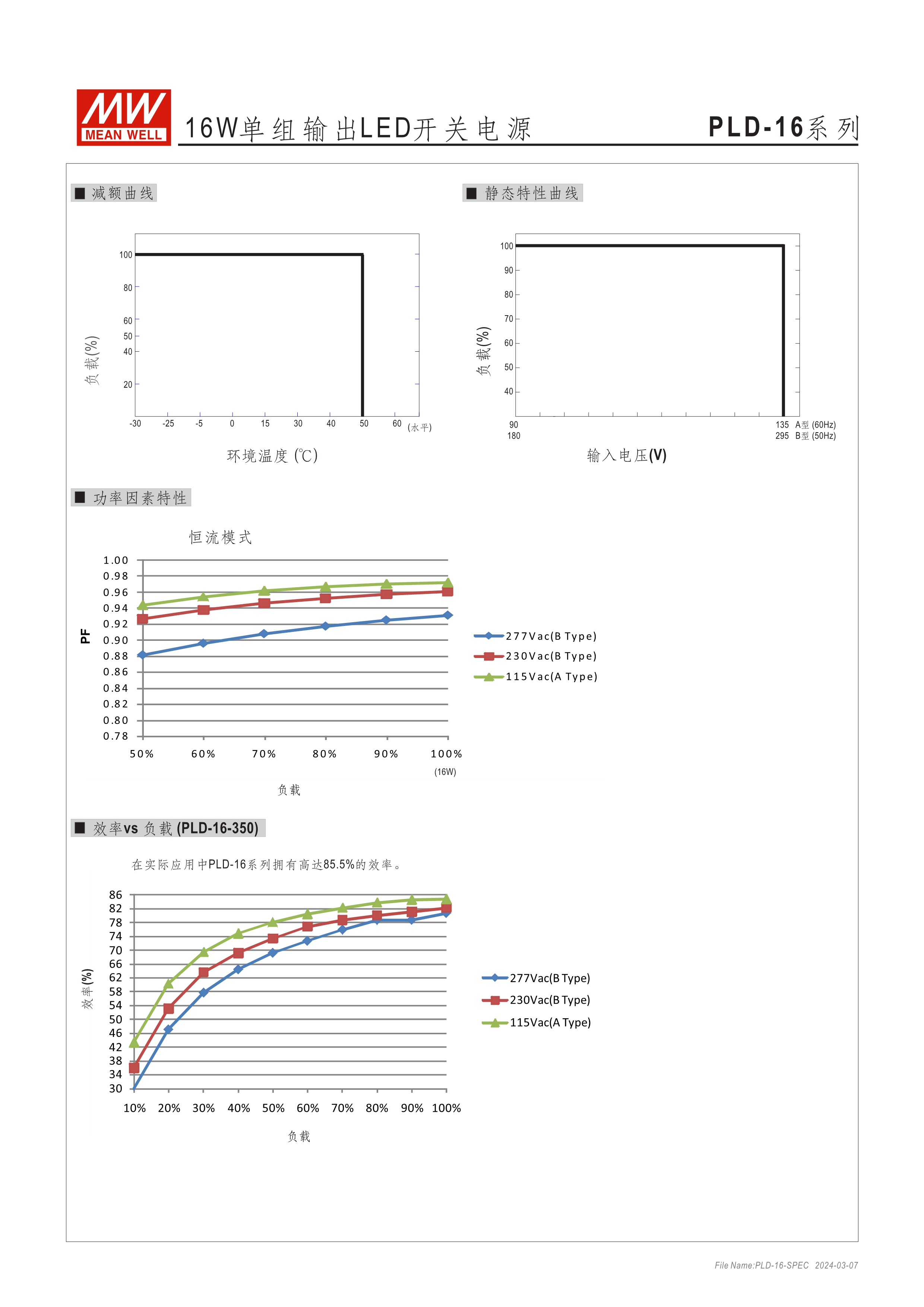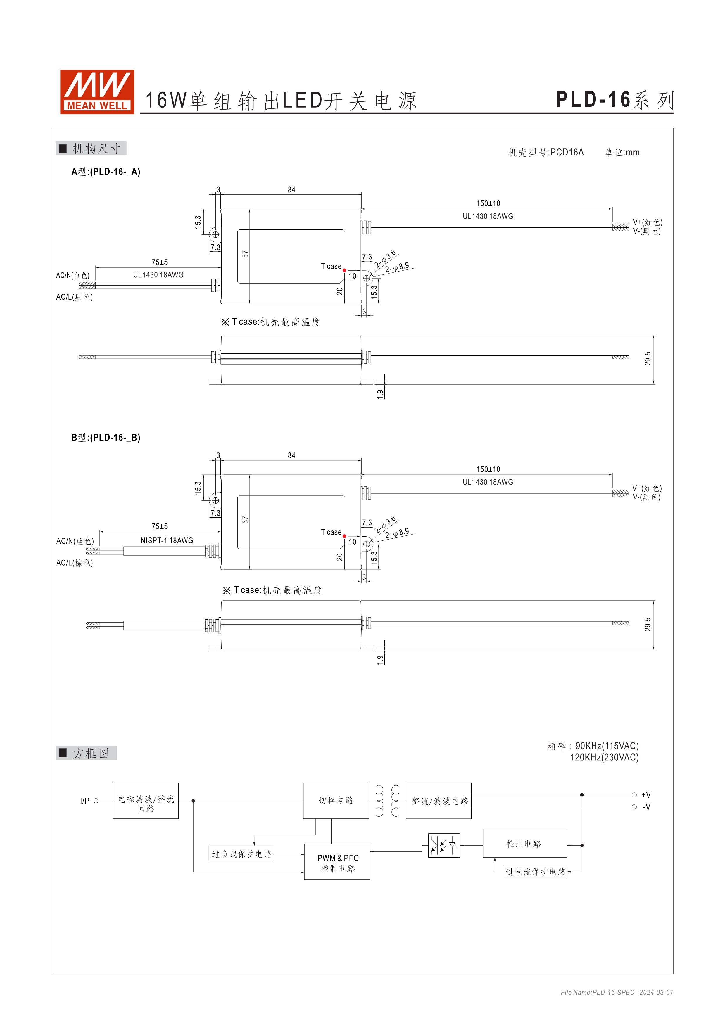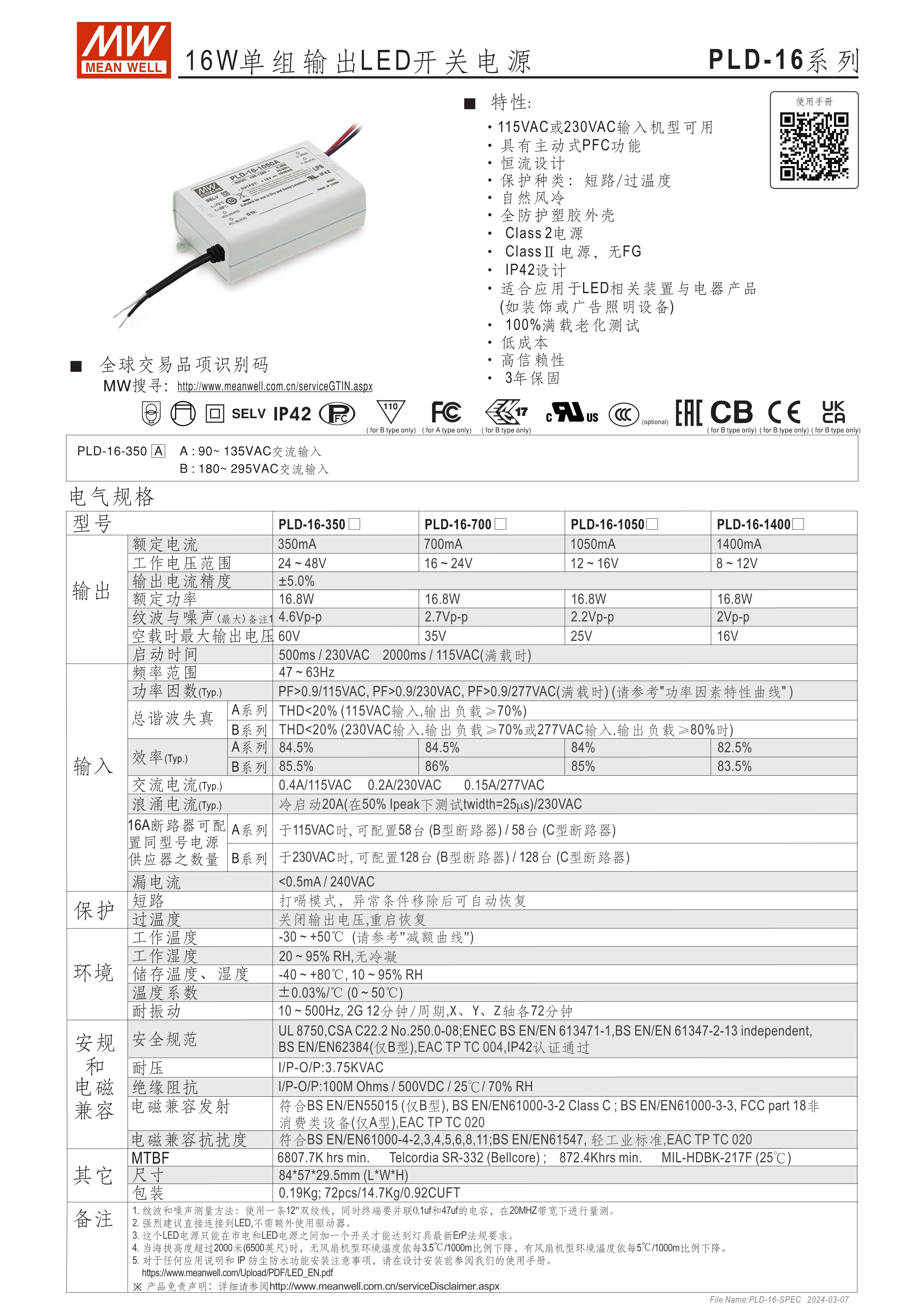 16W: 90~135VAC或180~295VAC 25W: 90~295VAC 40/60W: 180~295VAC 內(nèi)建主動式功率因子矯正功能(active PFC) 塑料外殼,IP42防護等級 Class II設計,無FG 恒流設計 適合于LED室內(nèi)照明相關應用