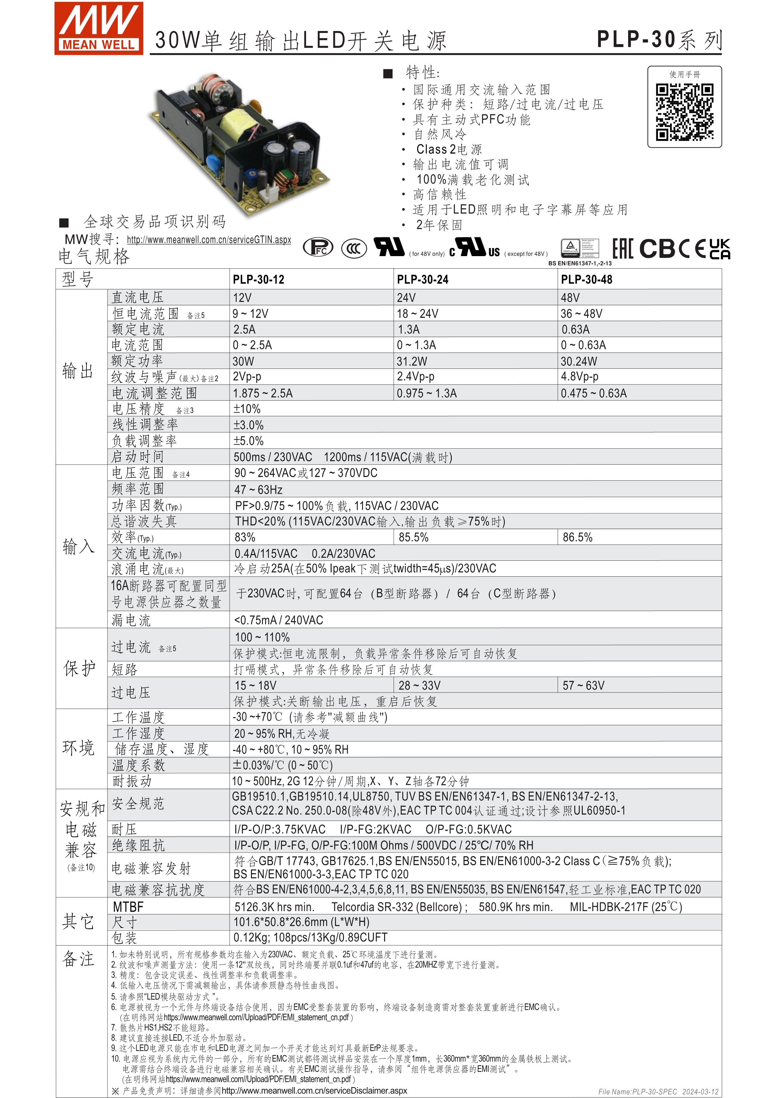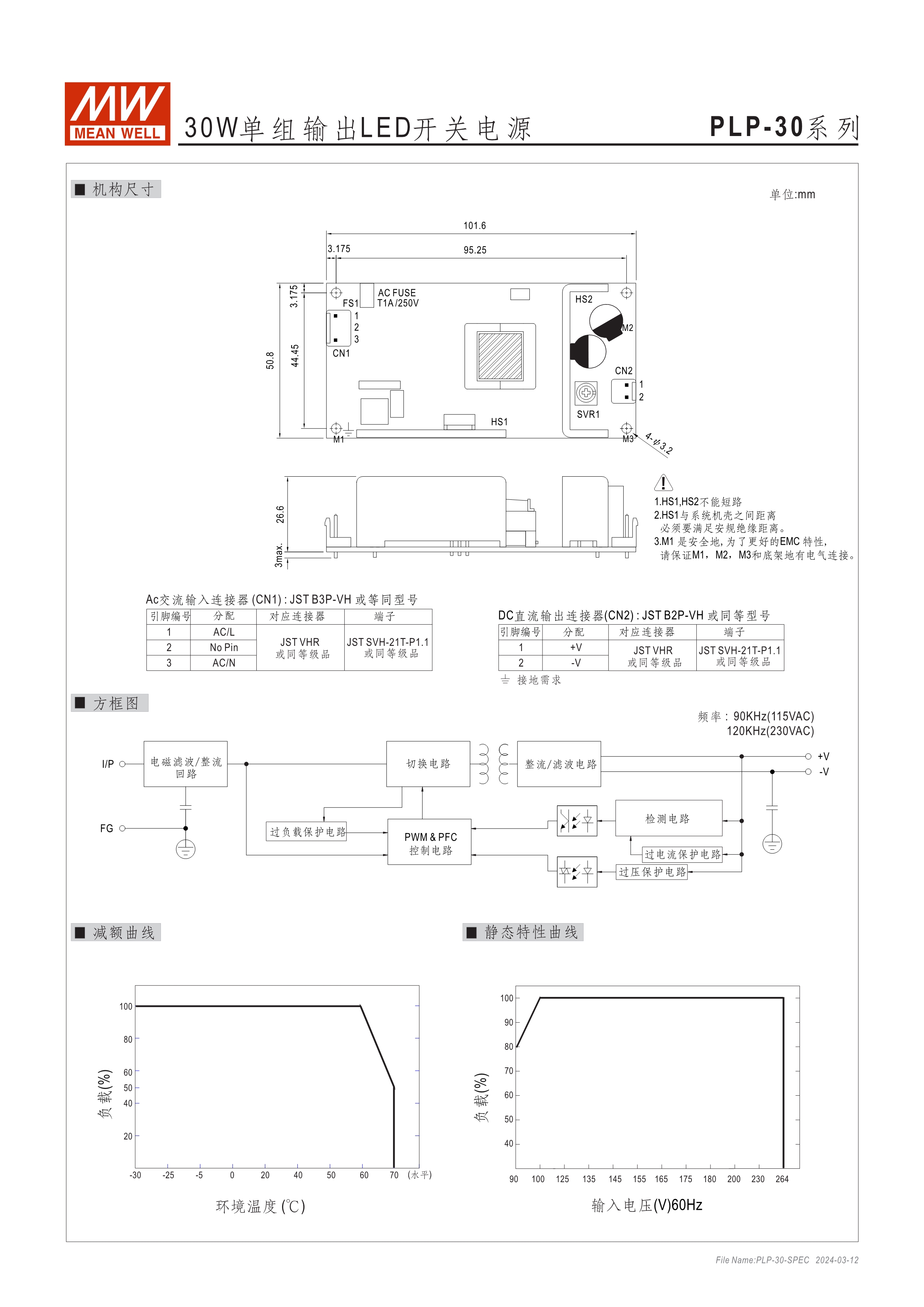 90~264VAC交流輸入, 內建主動式功率 因子矯正功能(active PFC) 適合內置于LED照明系統