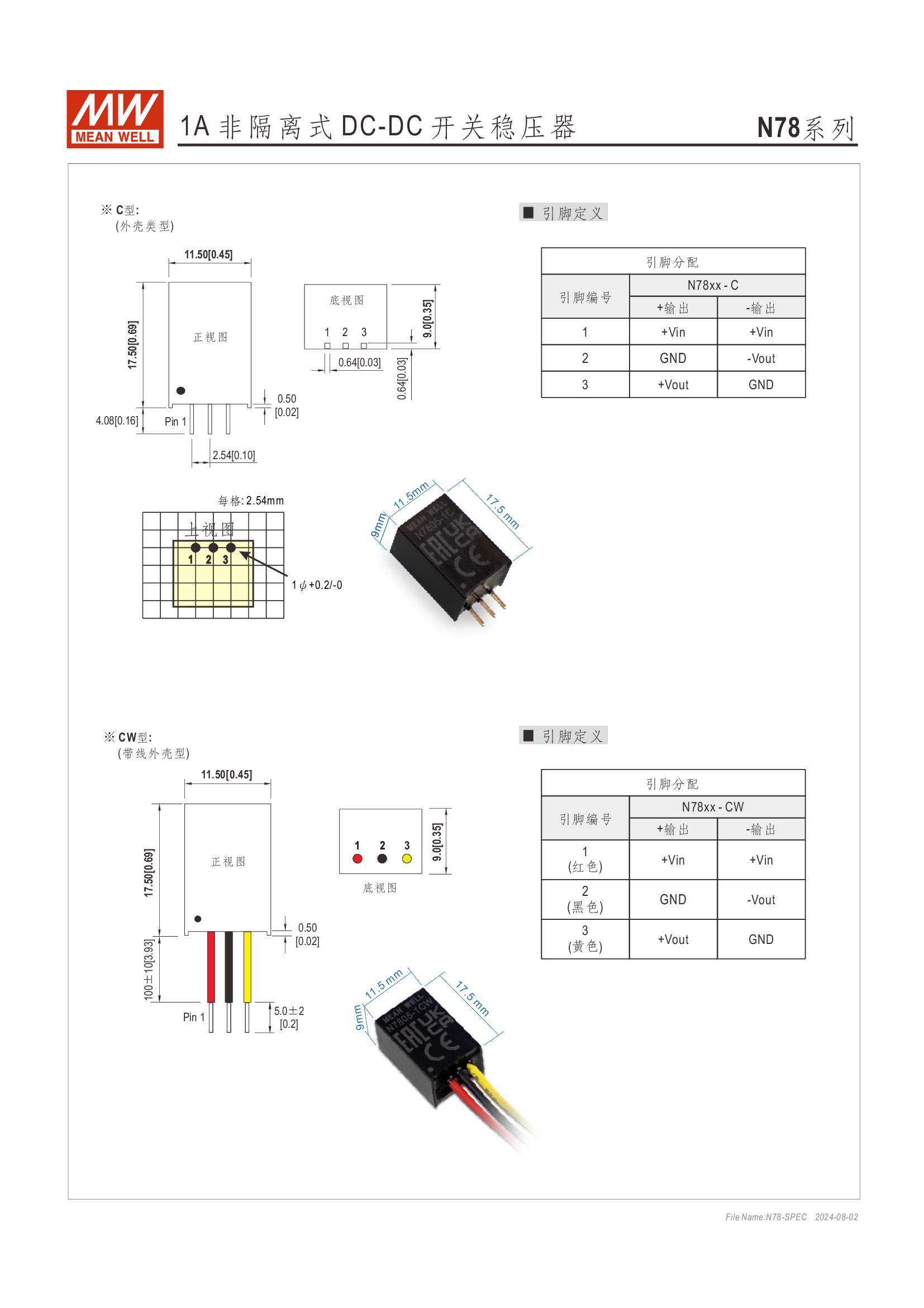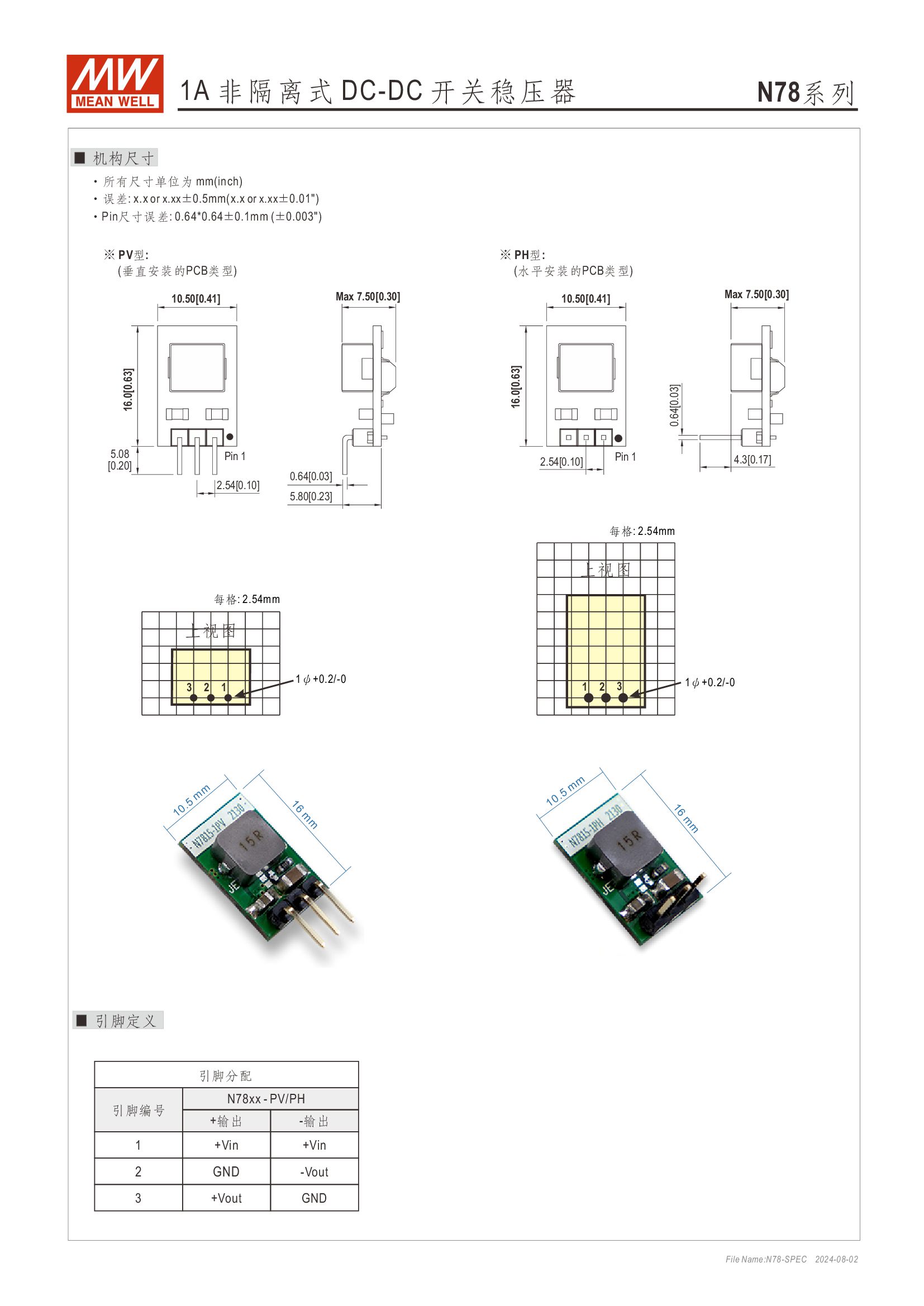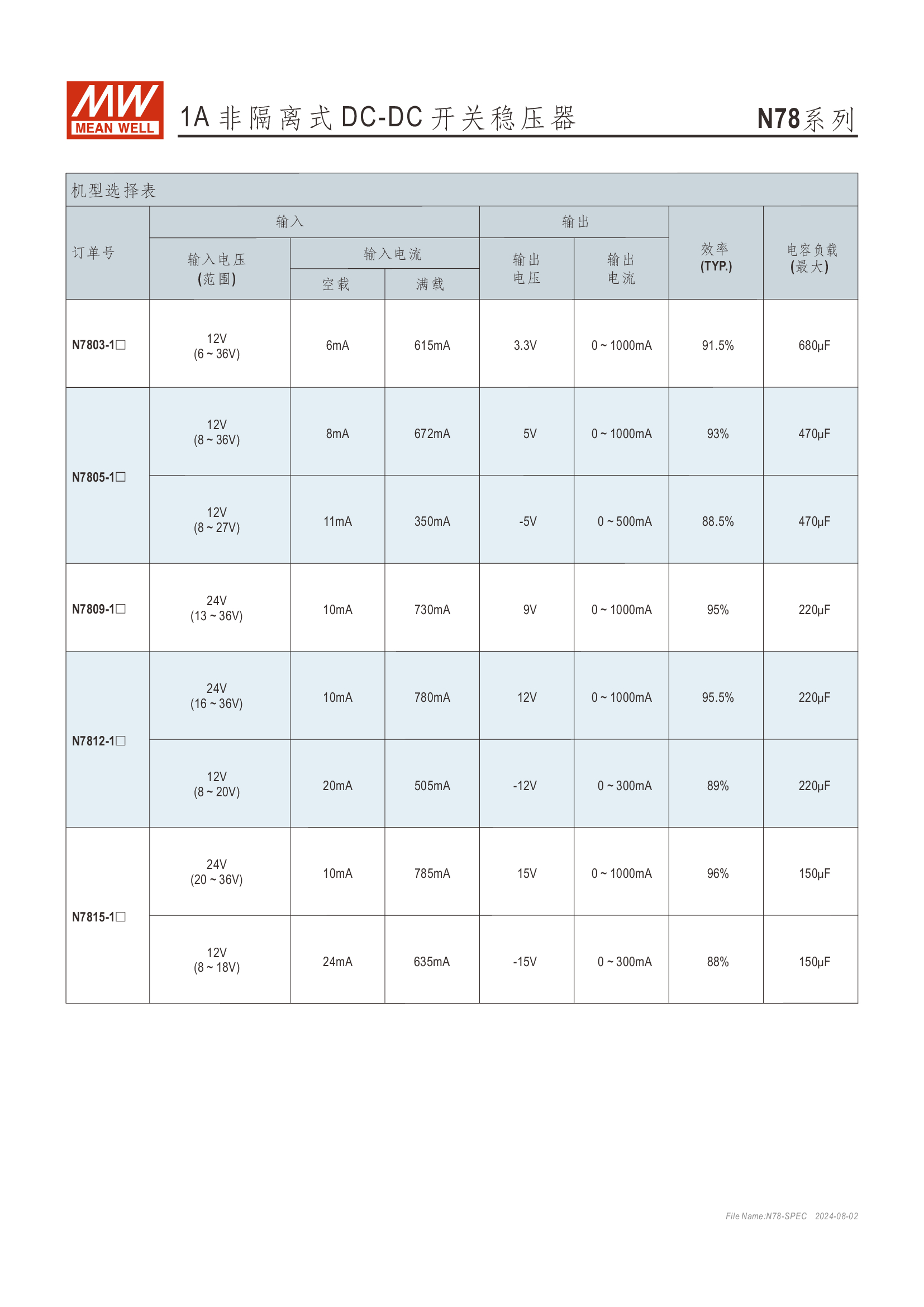 Pin-out 兼容 LM78xx/LM79xx 線性穩(wěn)壓器 效率高達 96%、無須散熱片 寬輸入范圍最高可達 36V 支援負輸出 工作溫度范圍:-40 ~ +85oC 符合 BS EN/EN55032 輻射 B 類、無需另加組件 保護種類:短路/過負載/過溫度 3 年保固
