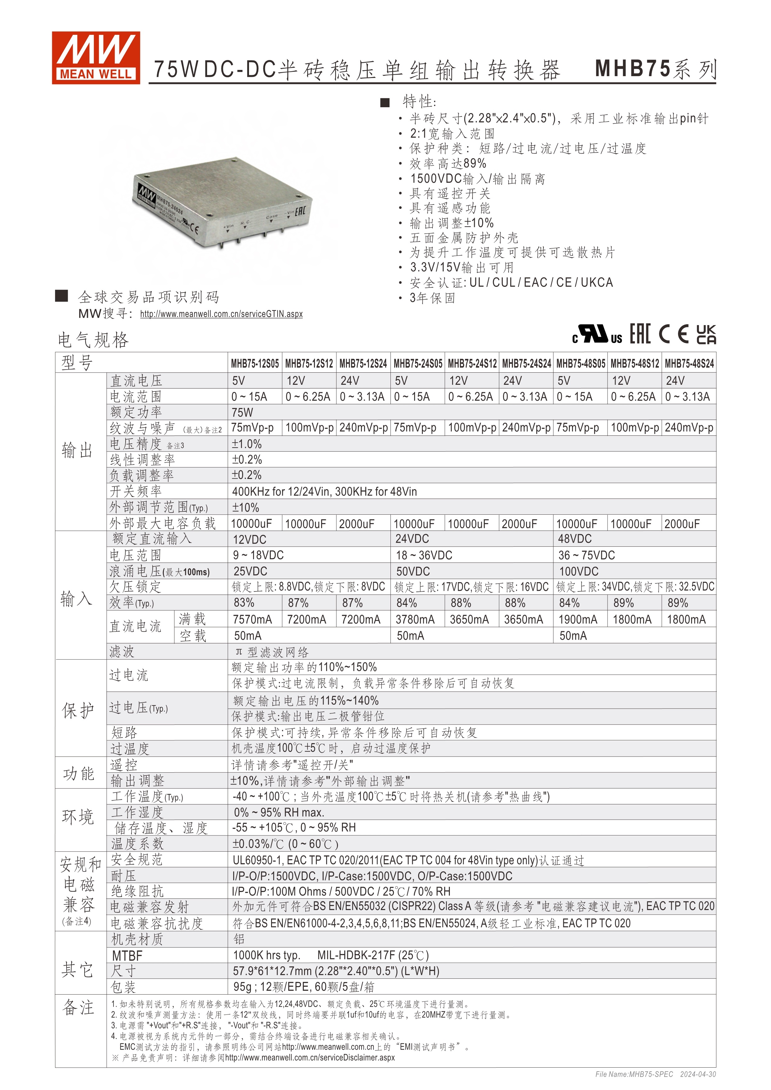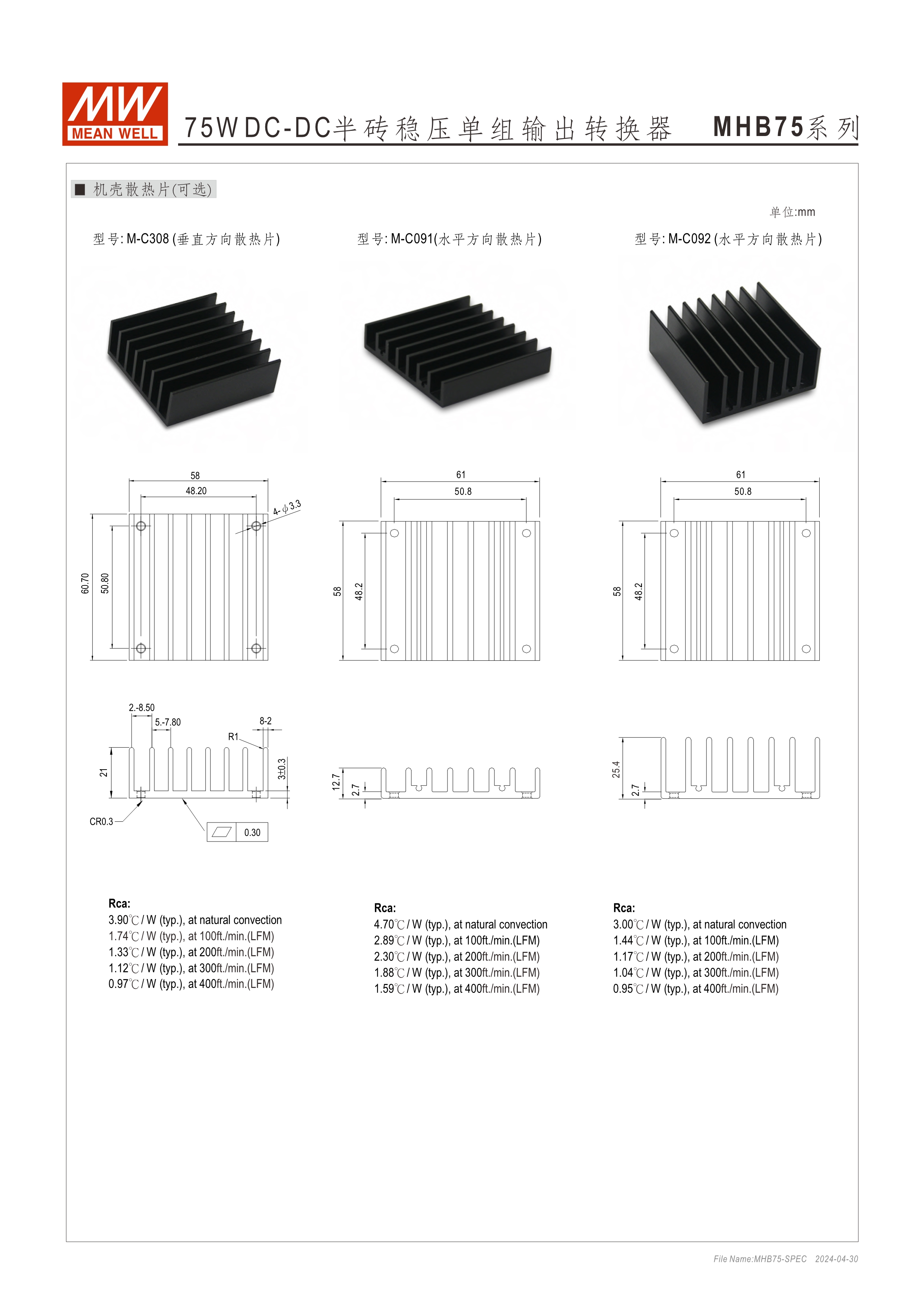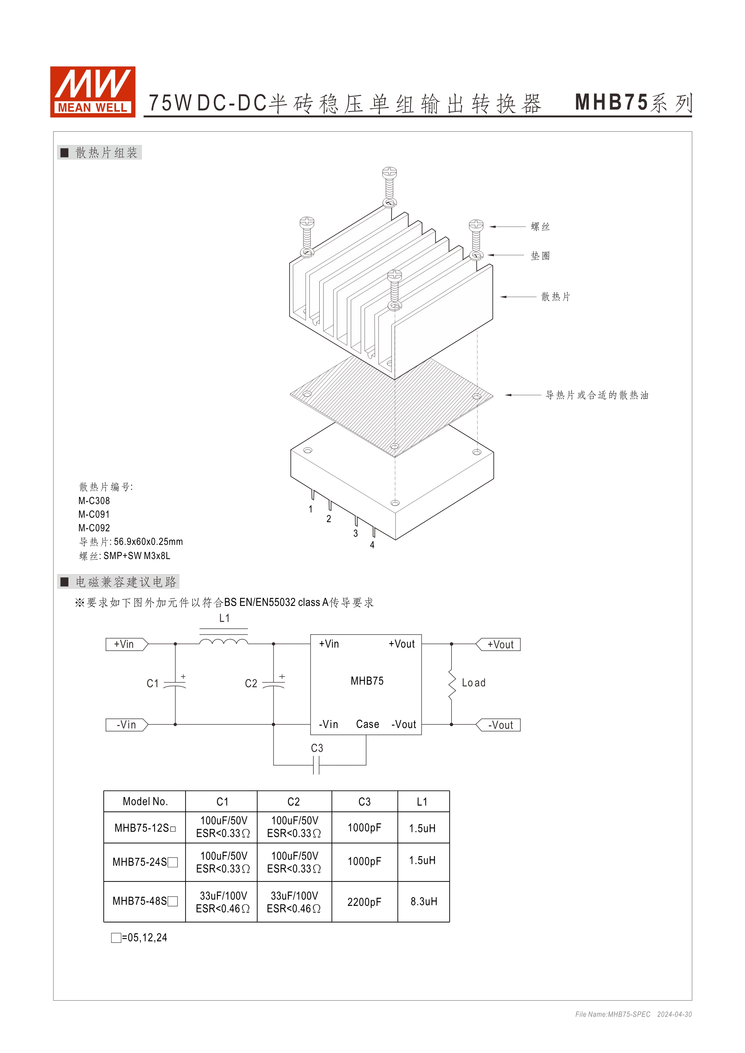模塊型快選表 2.28” x 2.4” x 0.5”半磚尺寸 DIP封裝 2:1 寬輸入范圍 1.5KVDC 輸入/輸出隔離 內(nèi)建遙控及遙感功能 可2.5V / 3.3V / 15V 輸出 可選購(gòu)散熱片