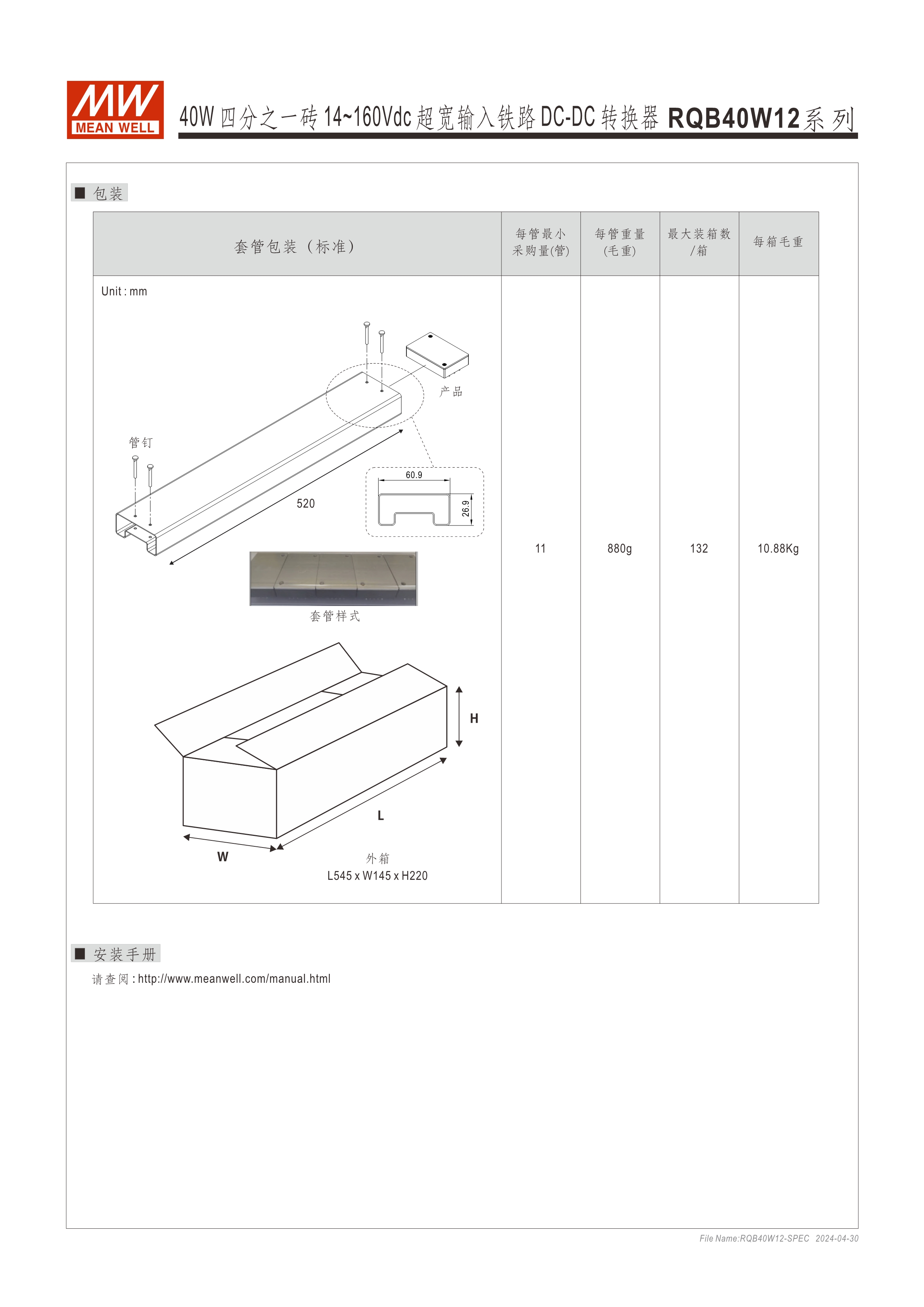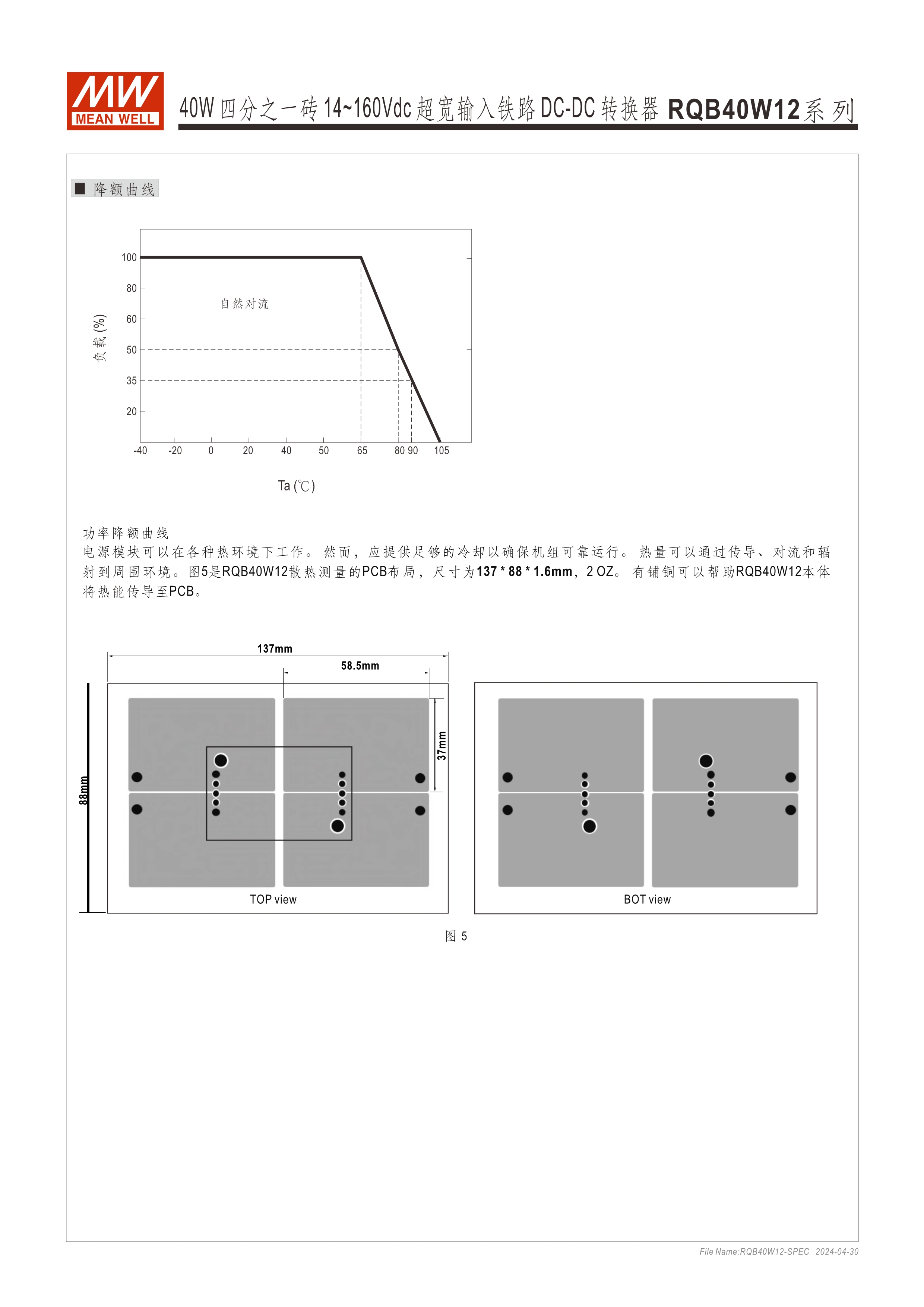 模塊型快選表 2.28” x 1.45” x 0.5”半磚尺寸 符合鐵路標(biāo)準(zhǔn)EN50155 40W: 12:1(14~160Vdc)超寬輸入范圍 ; 150W: 3:1(60~160Vdc)超寬輸入范圍 寬工作溫度范圍-40~+90oC 無(wú)需最低負(fù)荷 全封裝