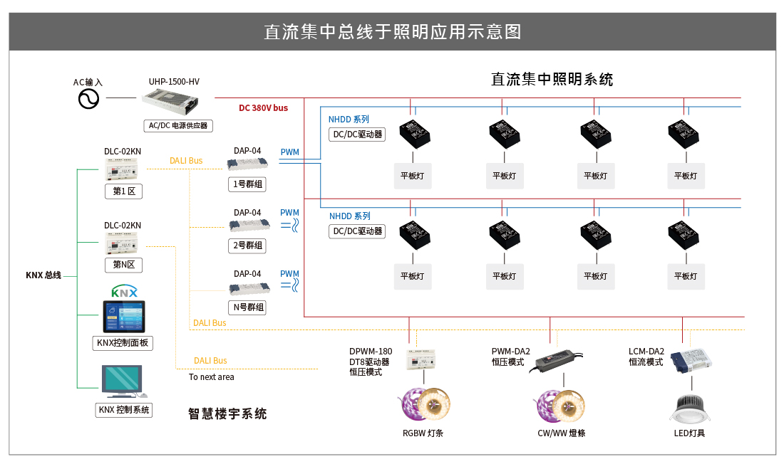 憑借超過35年的電源設(shè)計和制造經(jīng)驗,我們定義新的直流集中供電和直流照明應(yīng)用方式,可提供機殼型與DC/DC LED驅(qū)動器的完整解決方案。此外,直流集中供電可輕松整合到再生能源系統(tǒng)中,以降低電源轉(zhuǎn)換損失及結(jié)合儲能系統(tǒng)(ESS)的使用方式。如此才能達到一個完整的“直流世界”應(yīng)用,請參考下圖。