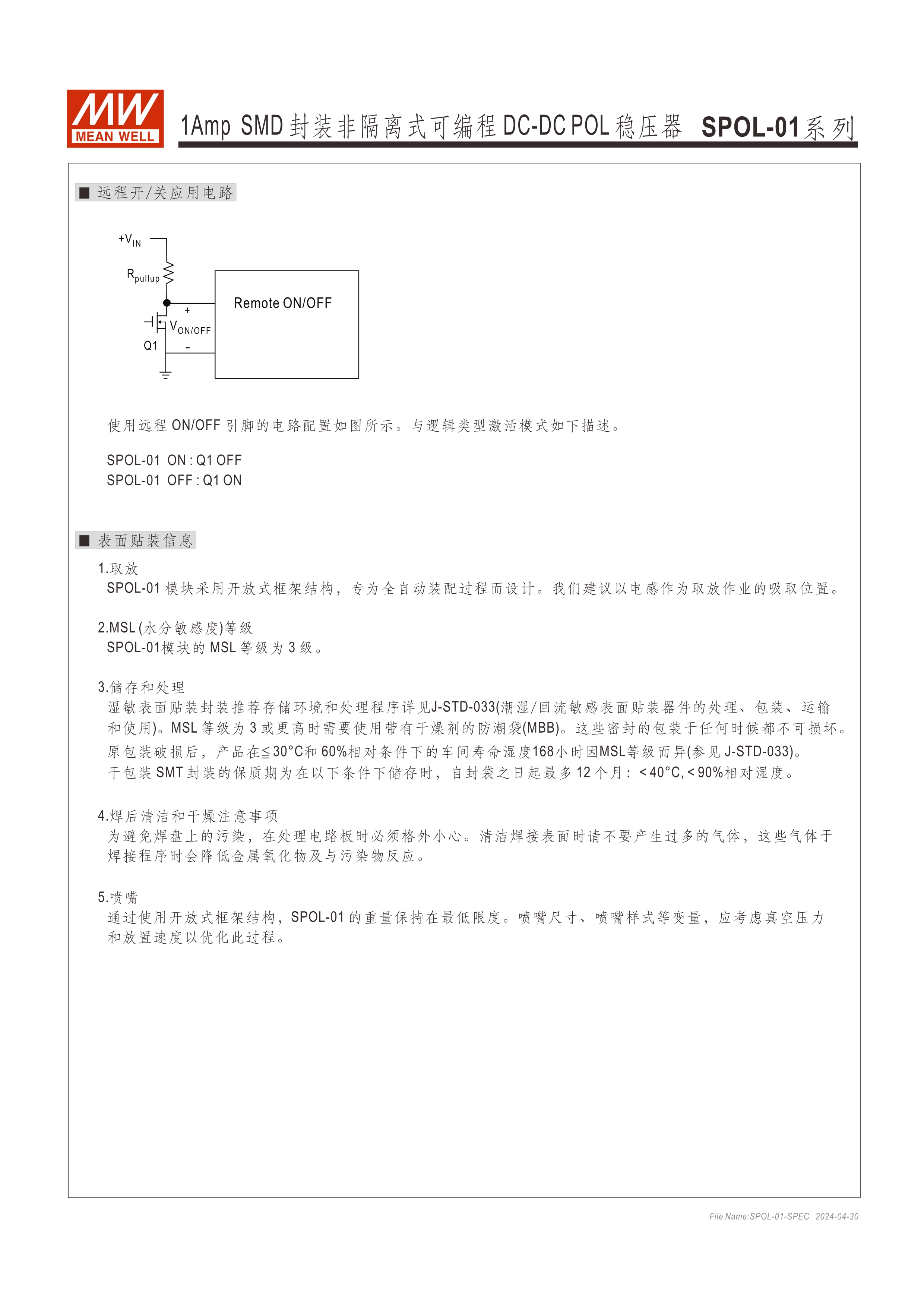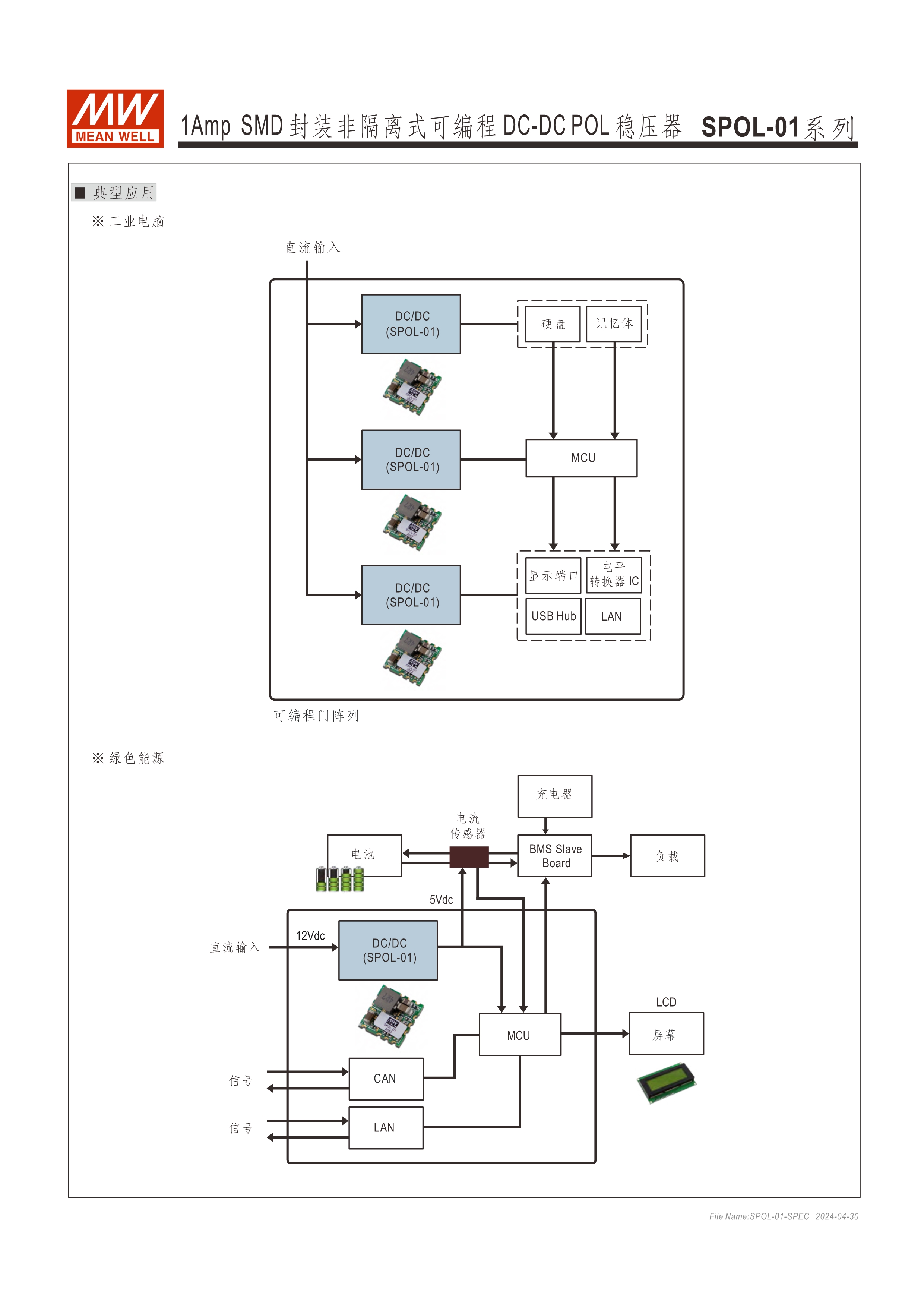 LGA (Land Grid Array) 表面貼裝 超小尺寸 (SPOL-01 : 12.4 x 12.4 x 4mm、SOPL-12 : 12.19 x 12.19 x 3.1mm) 寬壓輸入 (SPOL-01 : 3~14Vdc、SPOL-12 : 3~14.4Vdc ) 可程編輸出電壓 ( SPOL-01 : 0.9~5.5Vdc、SPOL-12 : 0.6~5.5Vdc ) 遙控ON/OFF功能 保護(hù)功能 : 短路 (可持續(xù)) 超寬溫 (SPOL-01 : -40~+82oC、SPOL-12 : -40~+90oC) 3年保固